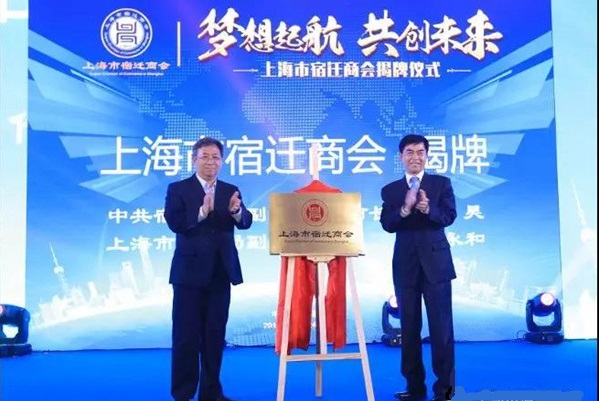 4月24日下午,上海市宿遷商會在滬舉行揭牌儀式。市委副書記、代市長王昊,江蘇省人民政府駐上海辦事處主任王建康,上海市人民政府合作交流辦公室副主任黃建平,市委常委、統戰部部長馮巖,副市長曹秀明,市政協副主席王柏生,解放軍南京政治學院原副院長路加模,江蘇省委政法委原副書記、南京市宿遷商會名譽會長張新民,上海市社會團體管理局副局長曾永和,市政府秘書長章其波出席揭牌儀式。王昊和曾永和共同為上海市宿遷商會揭牌。王昊還為上海市宿遷商會名譽會長頒發聘書,為上海市宿遷商會會長授牌。